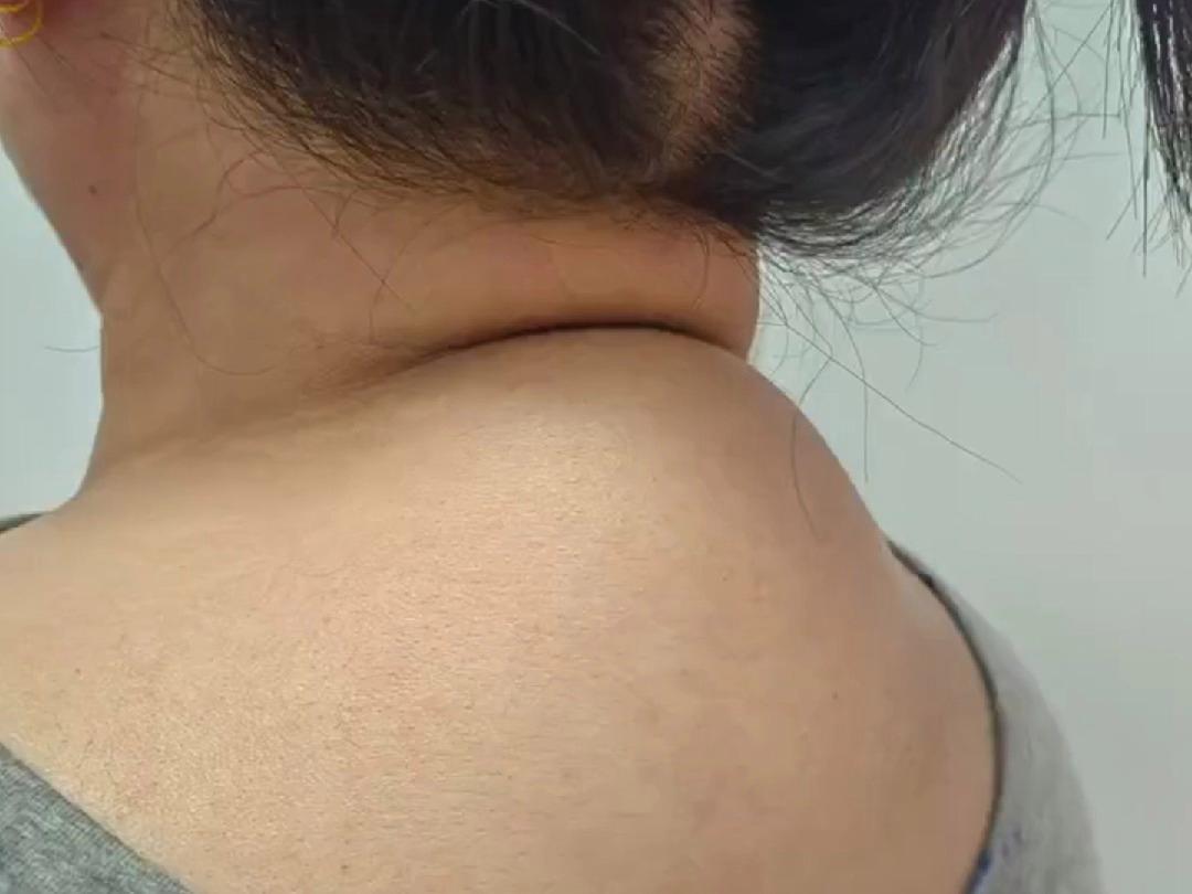 - 肌肉劳损、筋膜增厚斜方肌上束、肩胛提肌长期紧张僵硬,筋膜挛缩、纤维化,摸起来又硬又鼓。